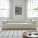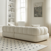 Eido redefines relaxation with its pillowy, undulating form—each oversized channel wrapped in sumptuous ivory boucle for an irresistibly soft touch. The continuous lines flow from arm to arm, creating a cocoon-like silhouette that invites you to sink into its generous depths.