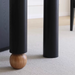 Below, Ginevra’s supporting elements speak in three clear voices: a sweeping, flat-panel leg anchors one side in quiet solidity; opposite, a pair of cylindrical posts rise in smooth symmetry; and at the center, a slender column capped by a delicately turned oak sphere adds a playful nod to classic craftsmanship. Together, these forms balance weight and lightness, geometry and organic curve.